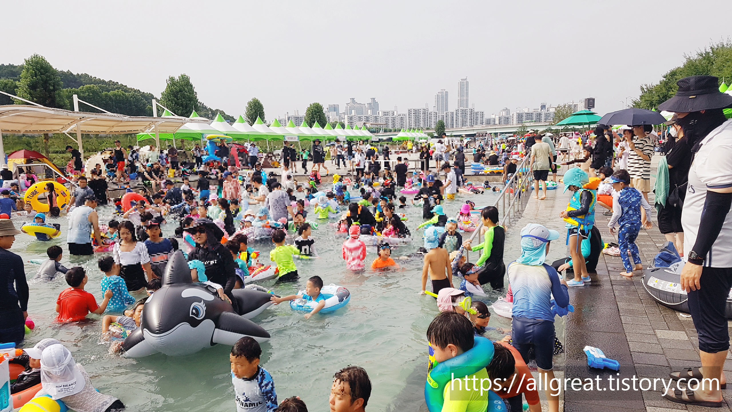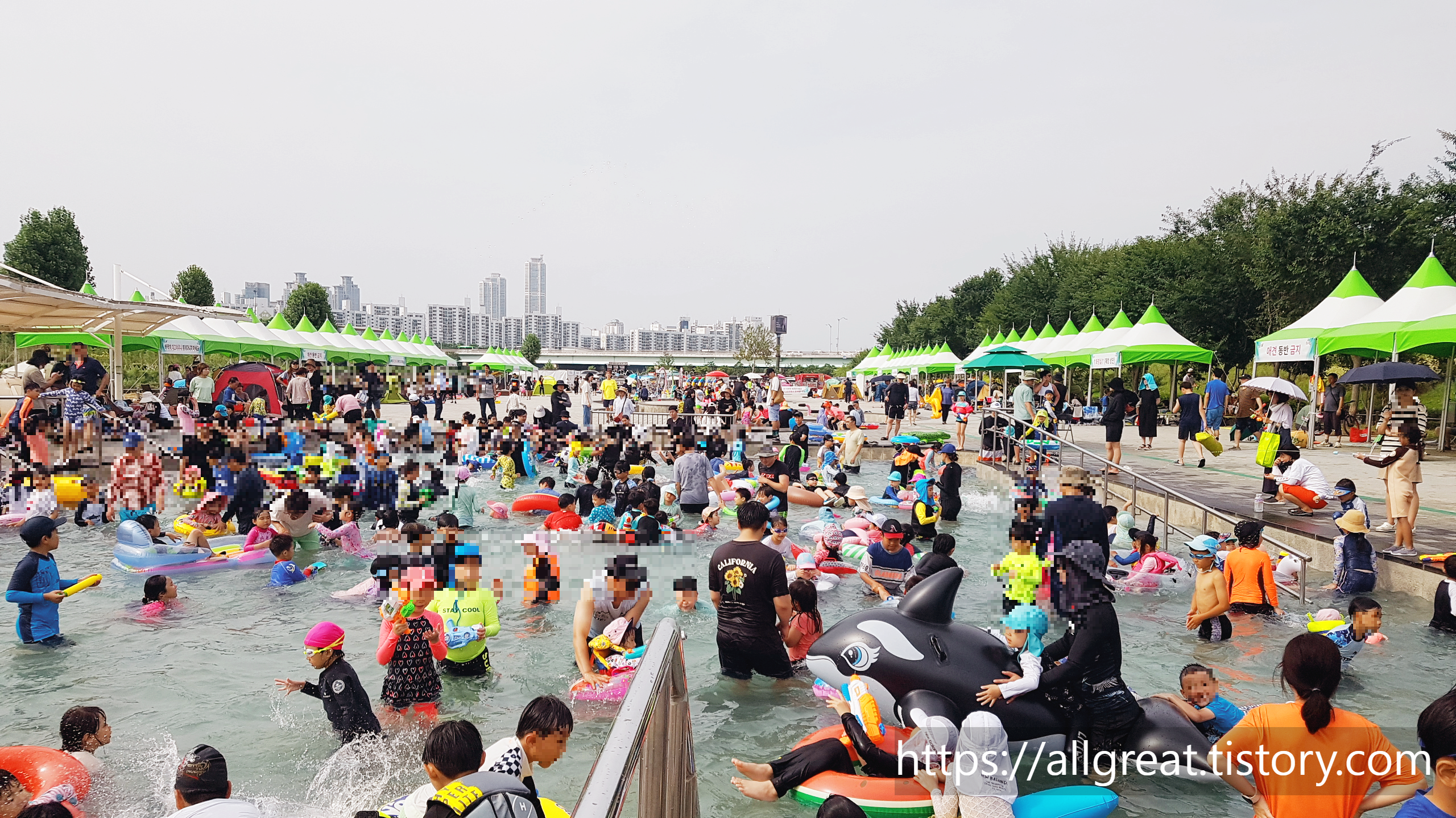 물 반 고기반도 아닌, 물반 사람 반이었다. 아이는 즐겁다며 신나게 물장구치며 노는데, 한 편으로는 눈병질환 같은 감염병이 걱정되기도 하였다.