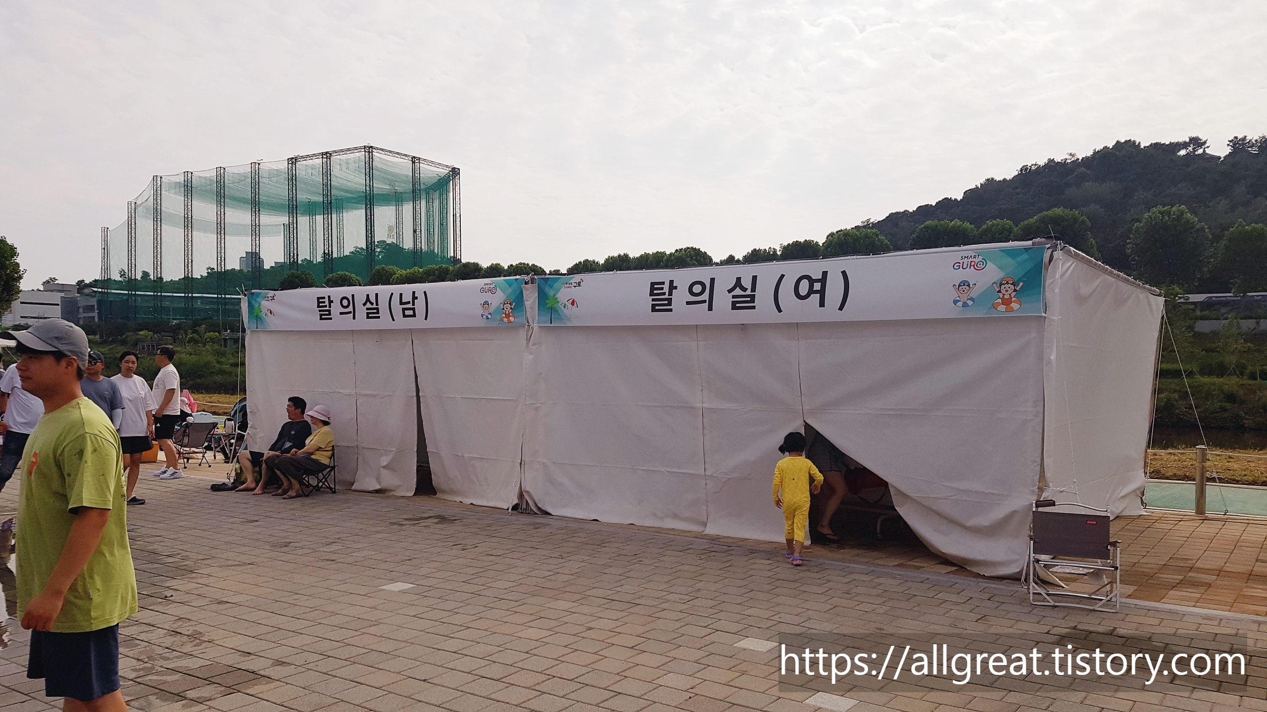 탈의실의 모습이다. 천막텐트 형식으로 만들어진 공간인데, 무더운 낮이었음에도 탈의실에 있다가 밖으로 나오니 시원하게 느껴졌다.