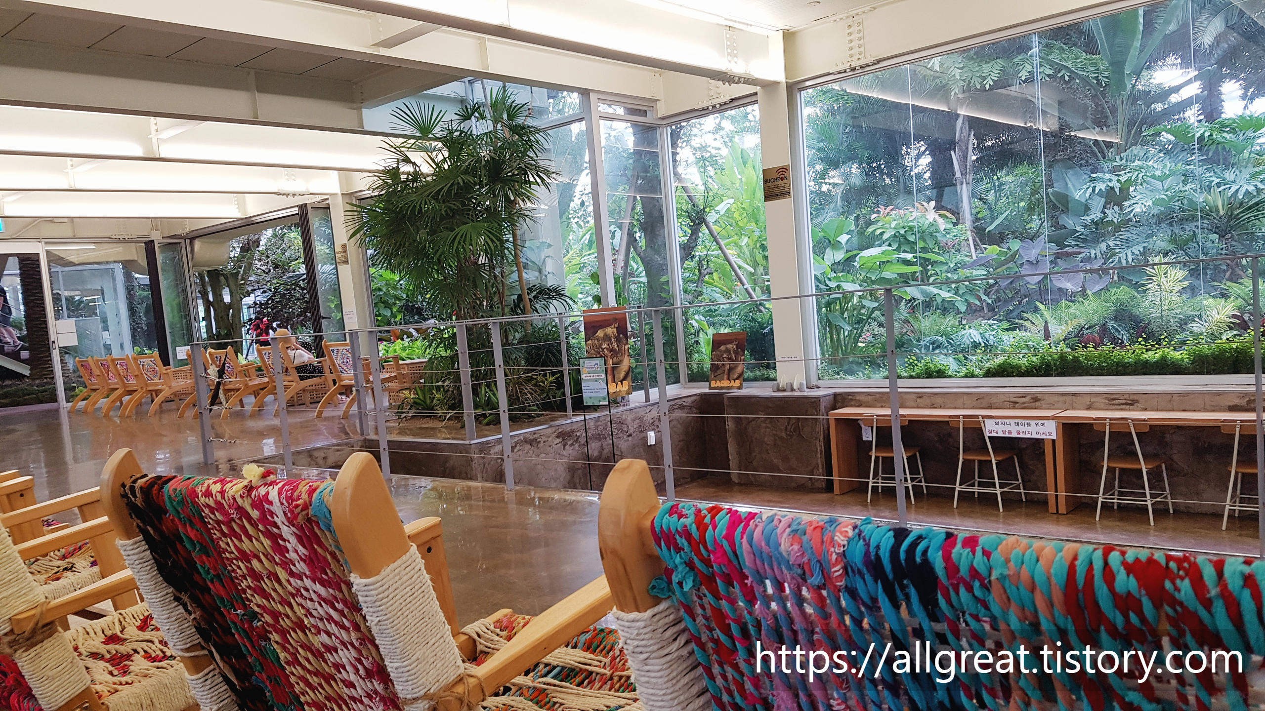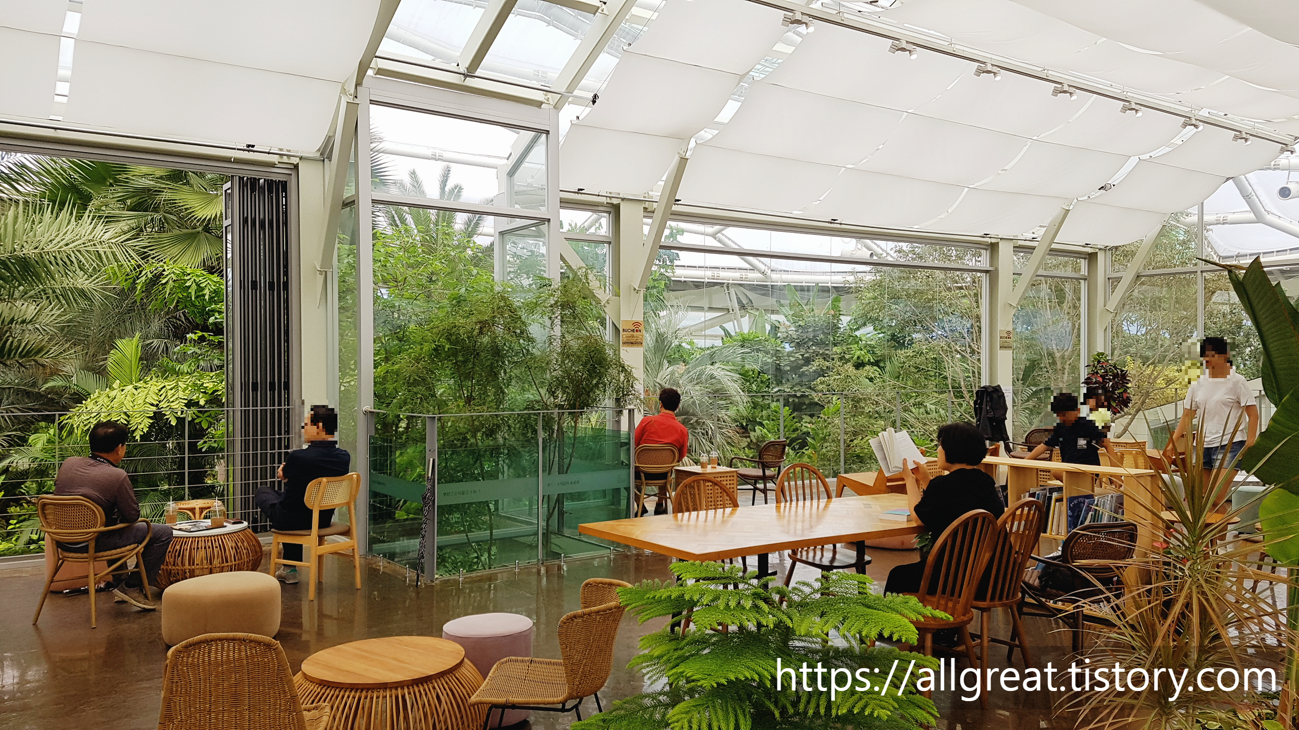 아파트 조경이나 동네 공원에서는 보기 어려운 다양한 종류의 나무, 꽃, 풀 등 식물들이 울창한 거대한 밀림 속 카페에 와있는 착각이 들기도 하는 부천가볼만한곳 식물원수피아 카페다.