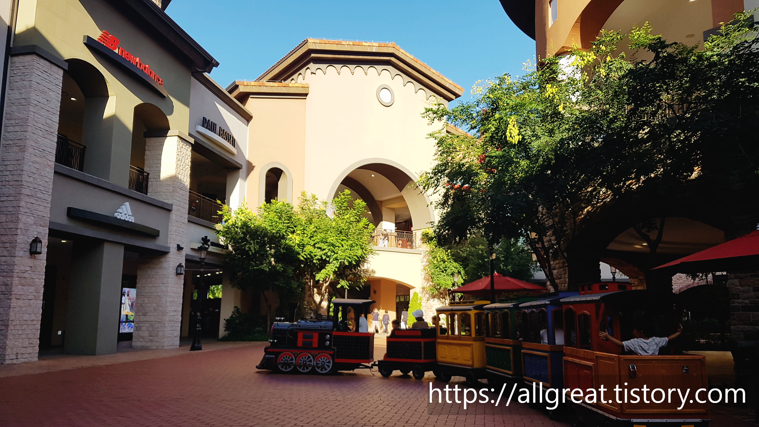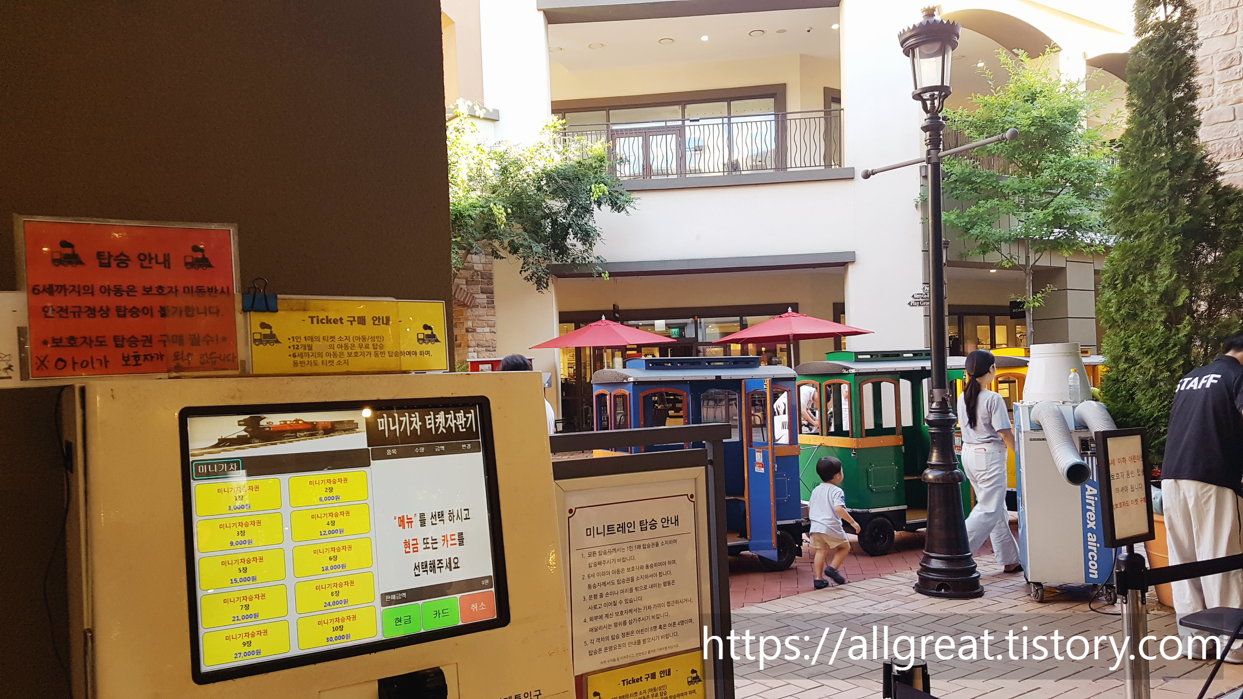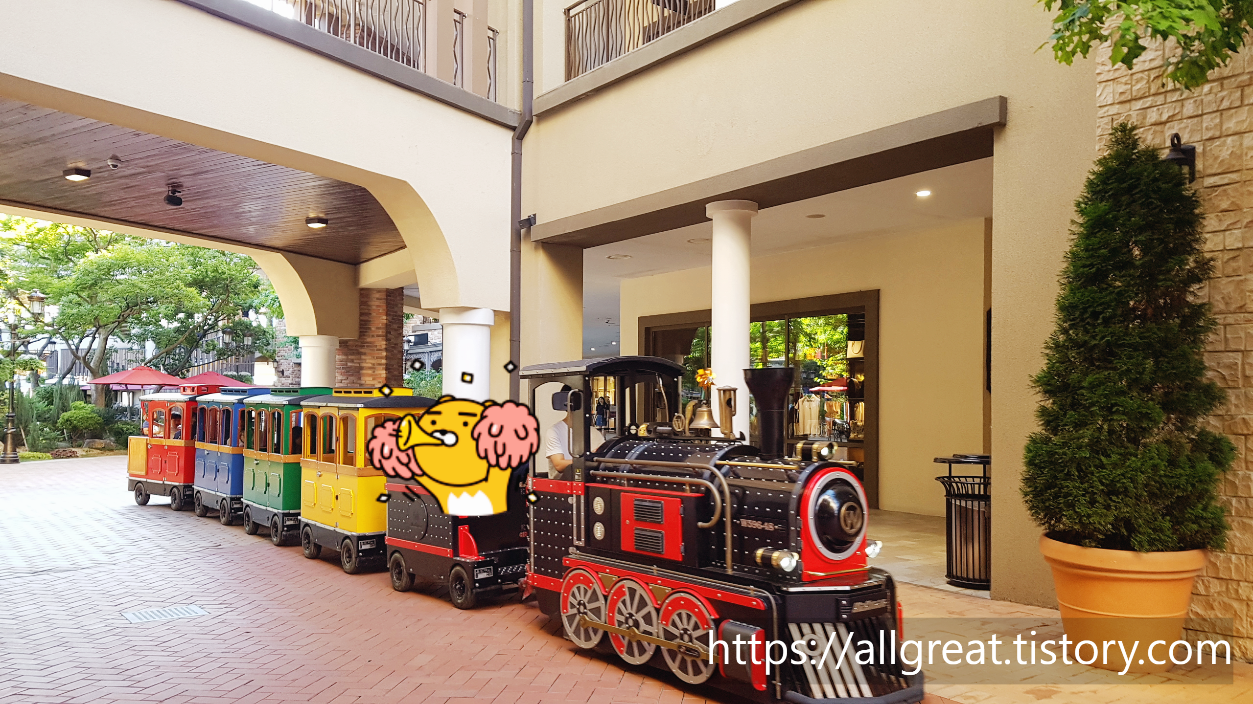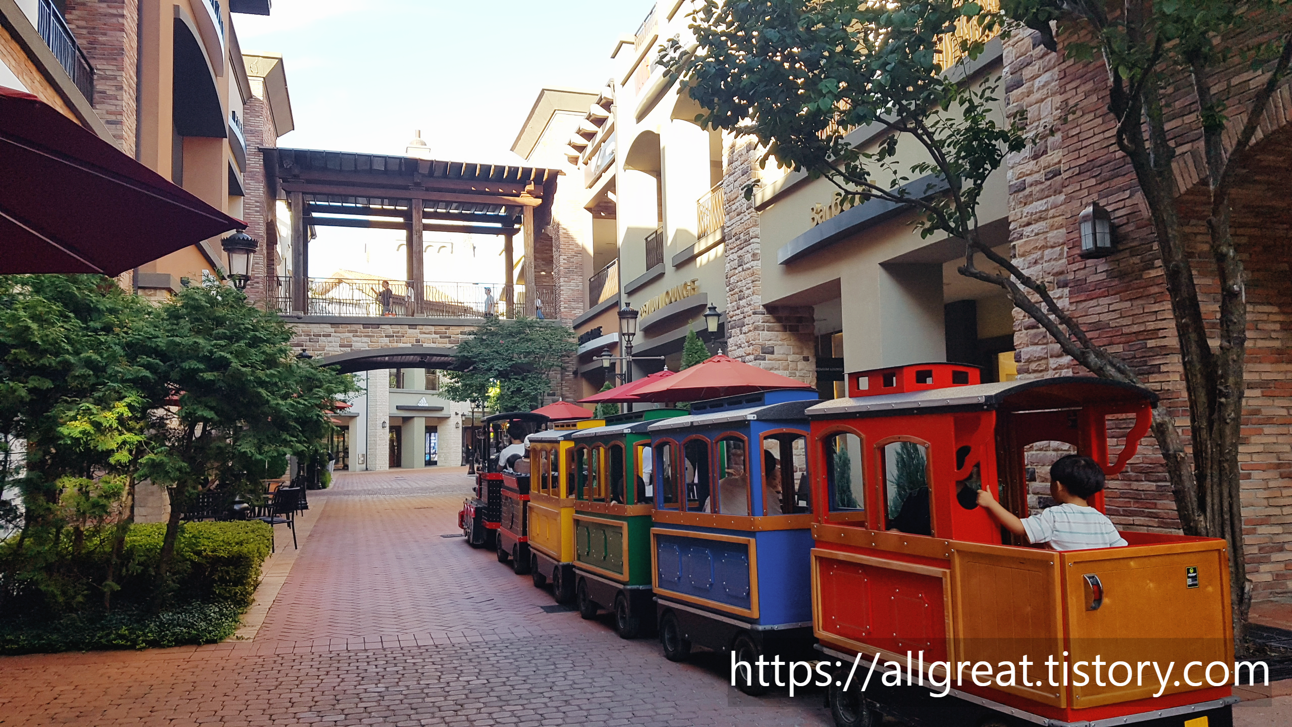이처럼 환상적인 배경과 알록달록 색상과 고풍스러운 디자인의 기차, 그리고 그 열차 안에 앉아서 환하게 웃고 있을 아이의 모습을 사진으로 남길 수도 있다. 비록 길지 않은 운행 시간이지만, 3천 원이라는 가격은 매우 합리적이고 저렴하게 느껴졌다. 아웃렛 측에서 이윤을 남기기보다는 서비스 차원에서 운행하는 것으로 보인다.