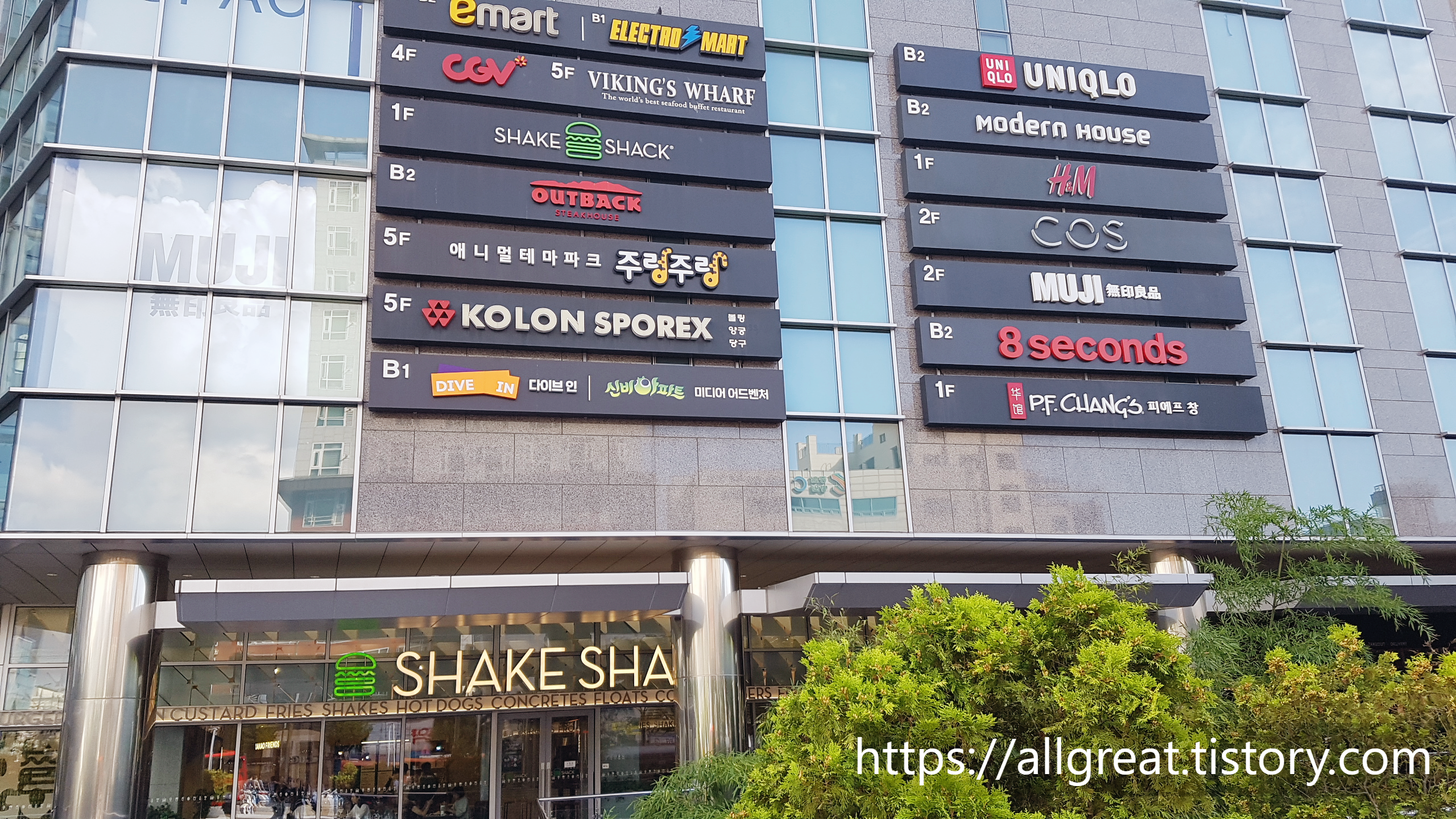 1층 - H&M, 쉑쉑버거(쉐이크쉑), 피에프창 등