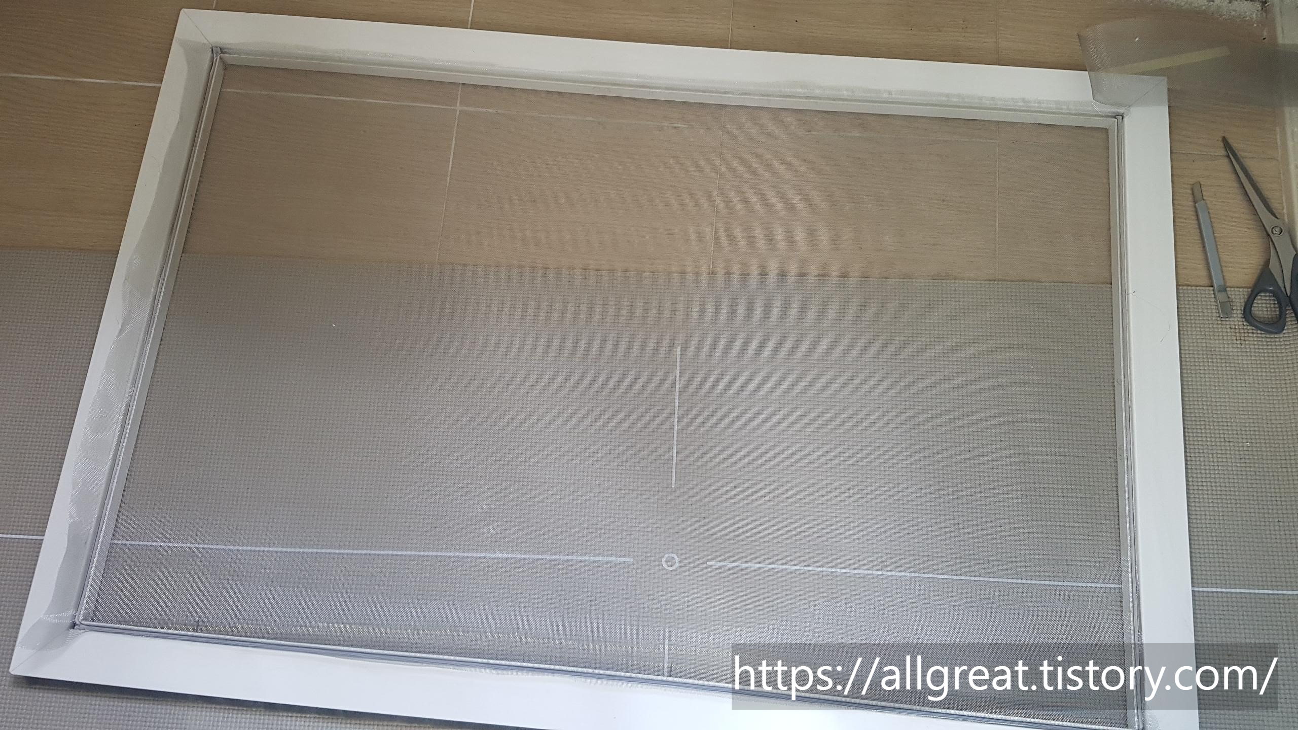 처음 방충망샷시 1개를 교체 시공해 보았다. 첫 방충망셀프시공 치고는 제법 만족스러운 결과물이다.
