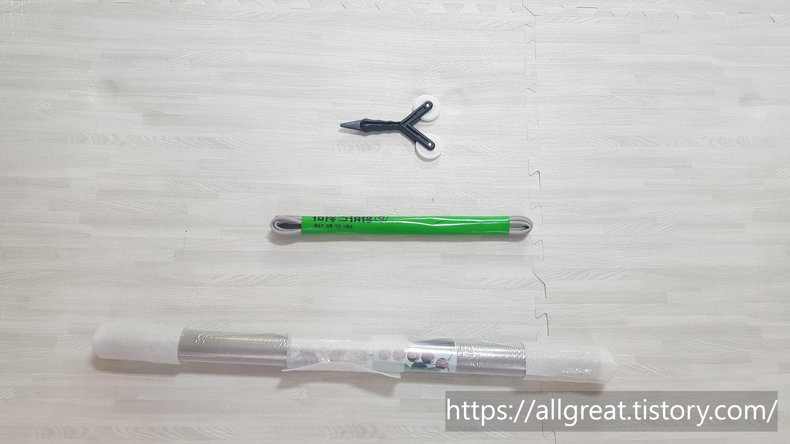 창 샤시 방충망새시 용품을 전문적으로 판매하는 온라인 스토어에서 구입한 (위부터) 롤러, 고마개스킷, 알루미늄 방충망이다.