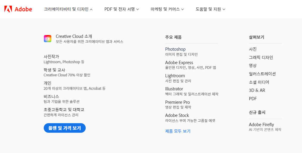 어도비 코리아 홈페이지에 접속한다.