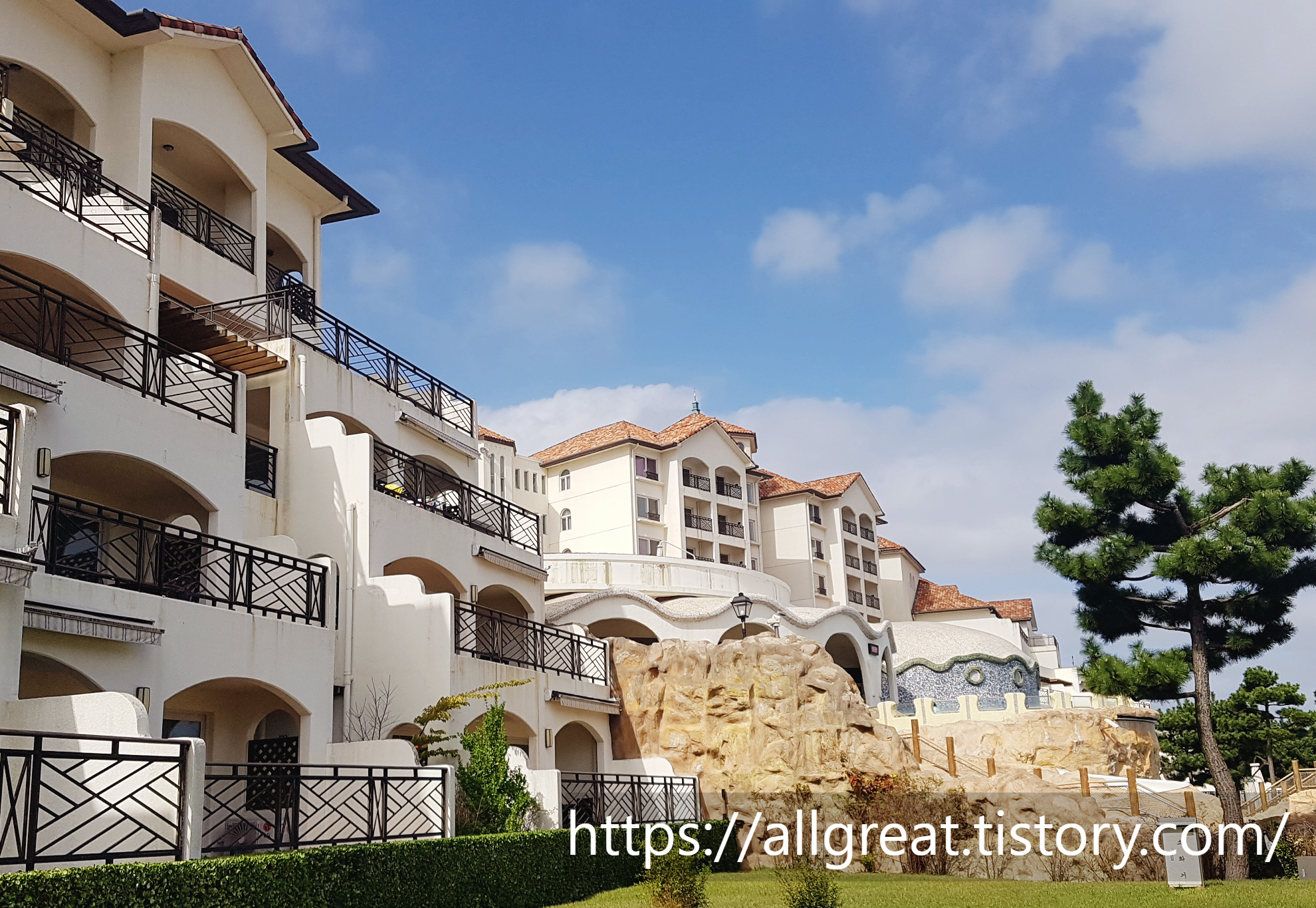 이국적인 지중해 유럽풍의 건축양식으로 지어진 쏠비치양양 호텔의 외관이다.