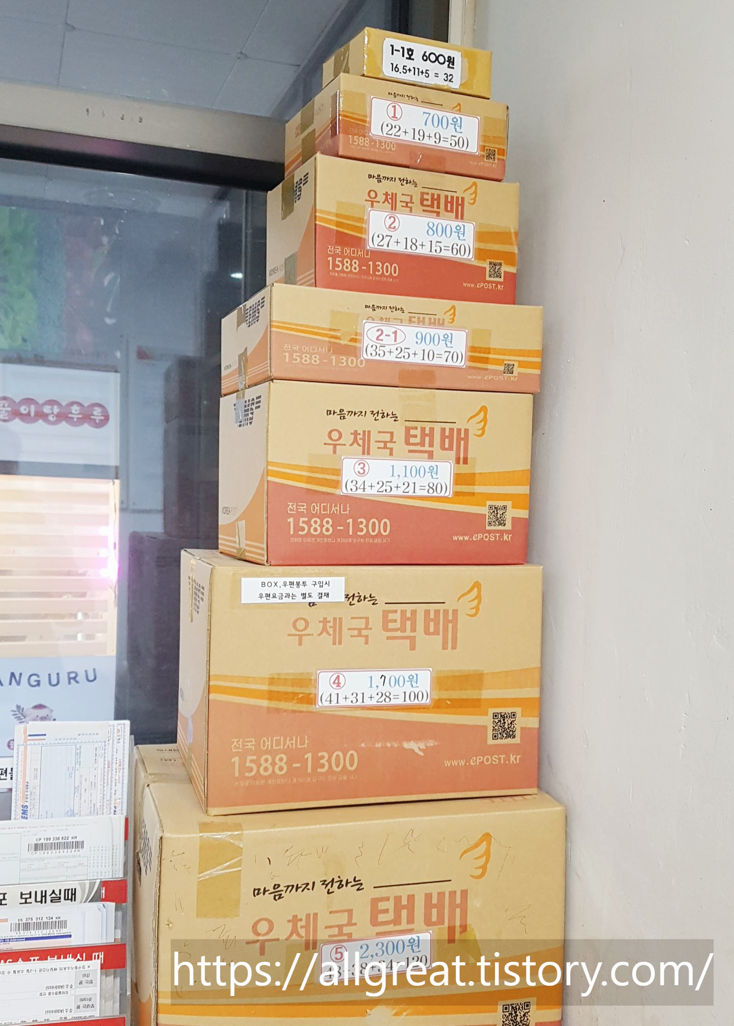 우체국박스 종류별 크기(cm) 가격