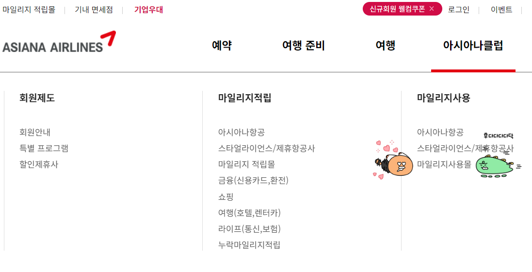 아시아나 항공 마일리지 사용몰