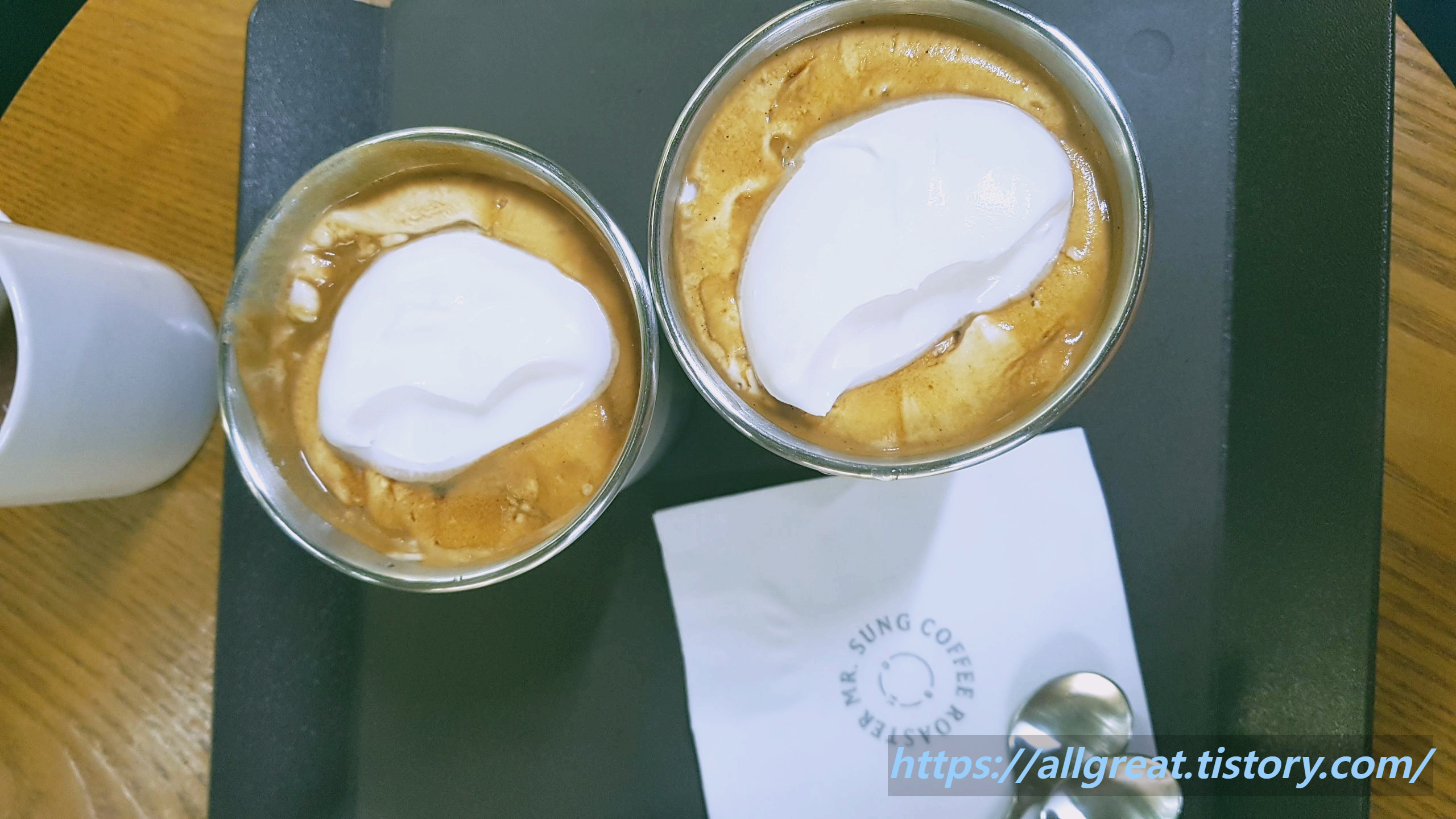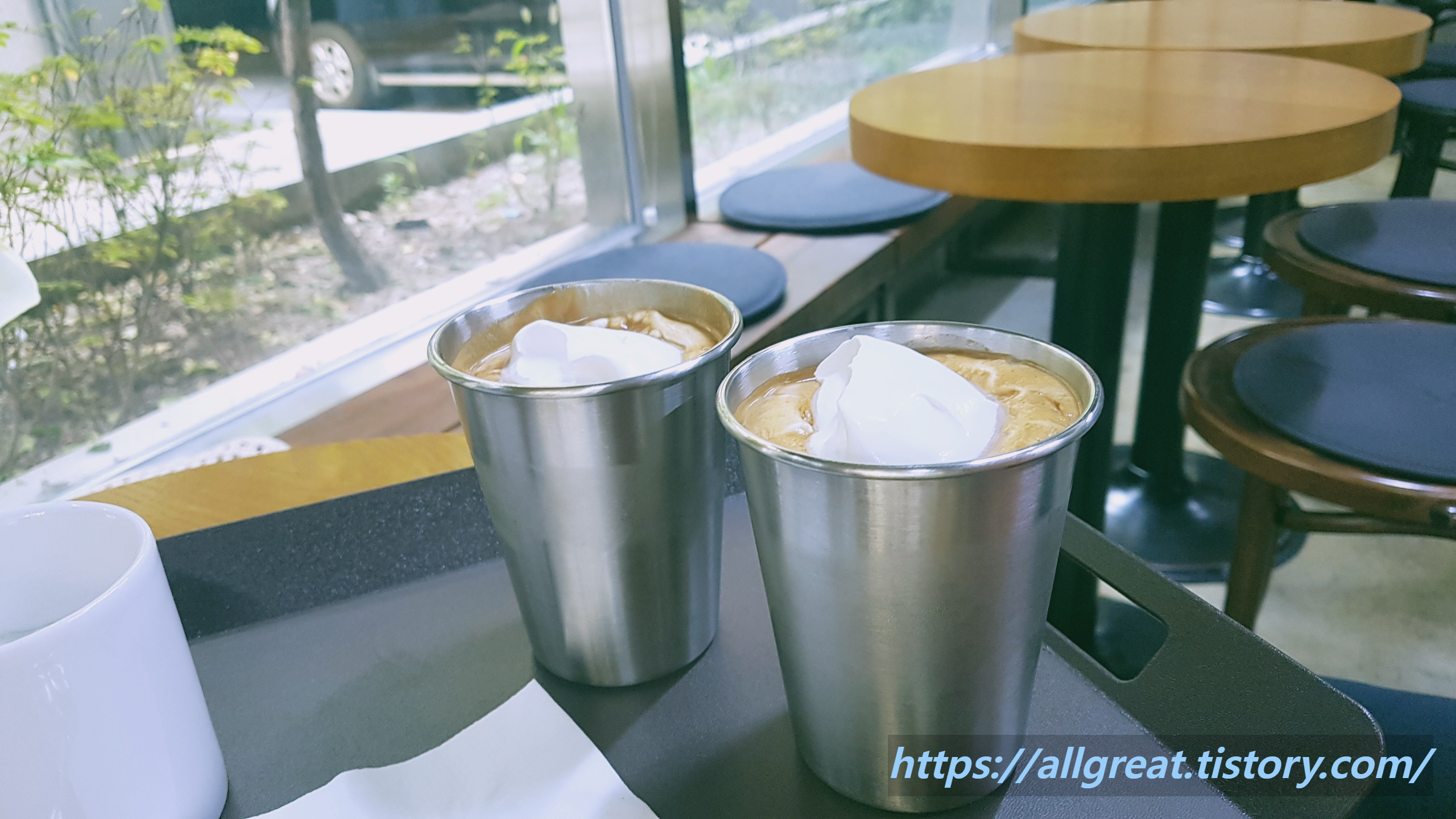 이 날 주문하여 마신 크림라떼와 아인슈페너다. 보이는 것은 비슷해 보이지만, 크림라떼는 우유가 들어가고 아인슈페너는 우유가 들어가지 않는다.