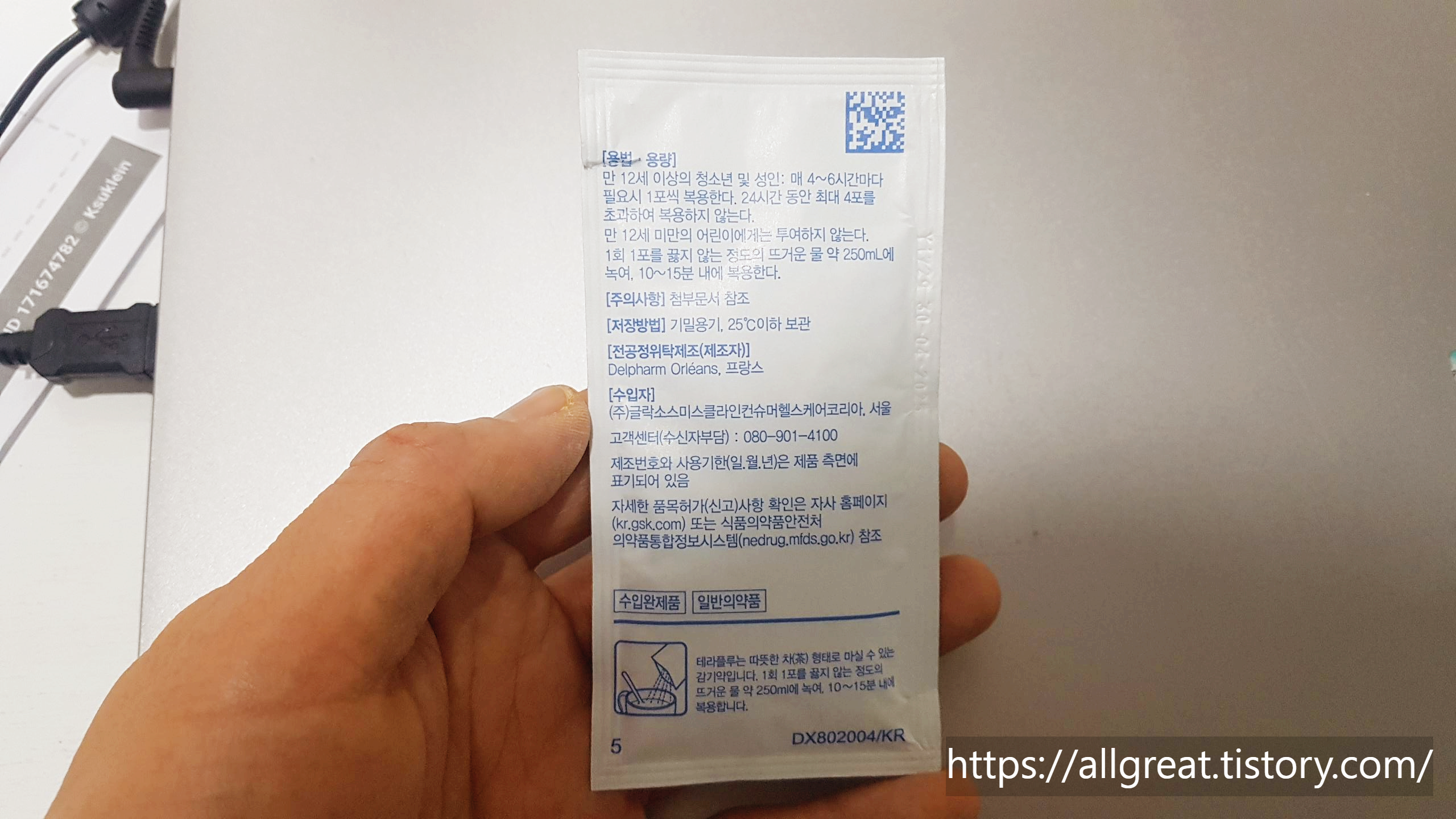 고열, 오한 등 독감으로 의심되는 강력한 감기증세가 나타난 감기를 이겨냄에 있어서 유일하게 약국에서 일반약품으로 판매하는 2가지 제품을 복용하였는데, 효과를 잘 보았다.