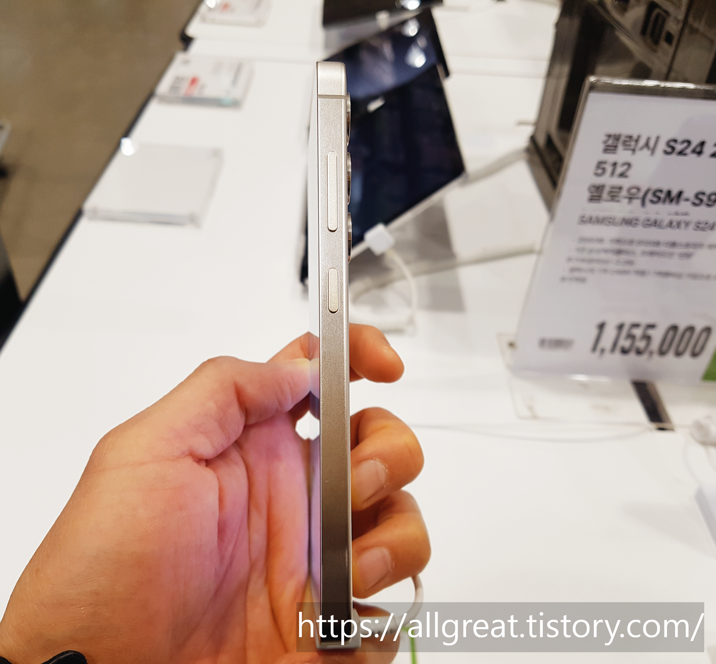 아이폰처럼 티타늄 소재로 마감처리한 갤럭시S24의 첫 그립감은 매우 만족스러웠다.