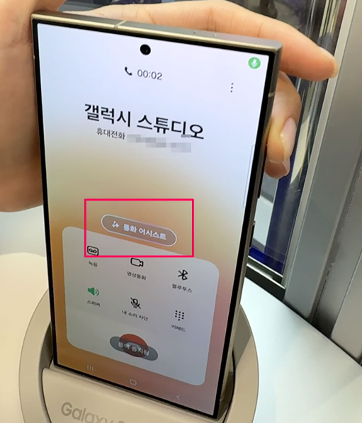 일반적인 통화걸기 방식으로 통화를 시작한 후에 화면상에 1)'통화 어시스턴스'를 먼저 누른다.