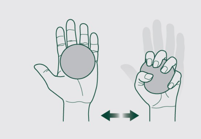 일명 공쥐기 스트레칭 방법이다. 방법은 간단한다. 손바닥 위에 테니스공이나 야구공 또는 마사지볼을 올려두고 공을 쥐었다 폈다를 반복하면 된다.