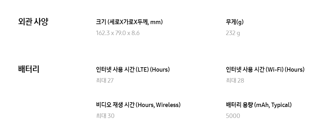 갤럭시S24울트라 주요 스펙 정보