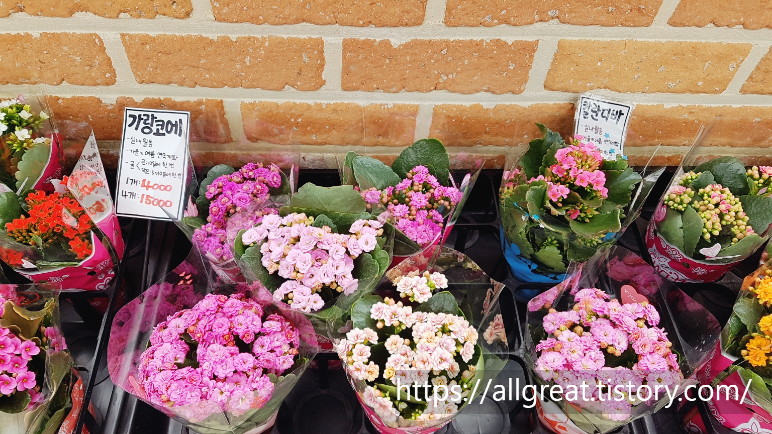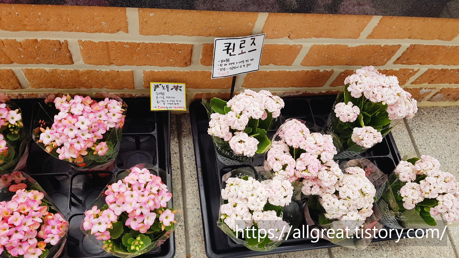 화분 하나당 4,000원에 판매되는 모종으로는 퀸로즈, 노블, 카랑코에, 칼란디바 등이 있다.