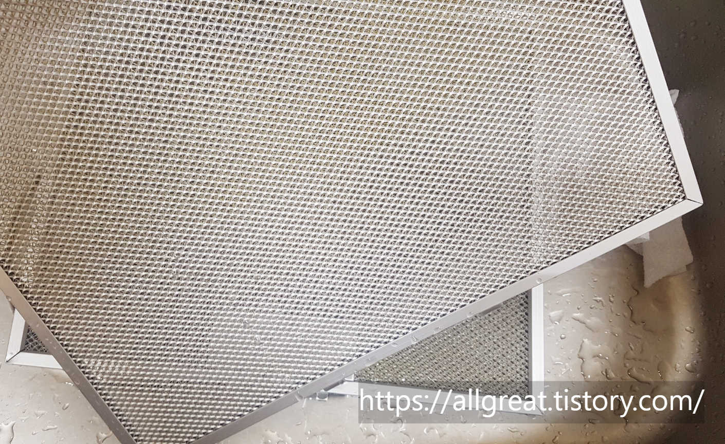 주방에서 요리할 때 발생하는 음식연기와 입자들을 가장 먼저 1차적으로 걸러주는 필터는 세척을 자주 해줘야 할 정도로 쉽게 오염되고 냄새를 유발한다.