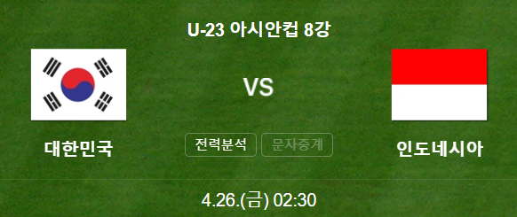 2024 아시안컵 U23 8강전에서 우리 한국의 상대팀으로 인도네시아로 결정되었다.