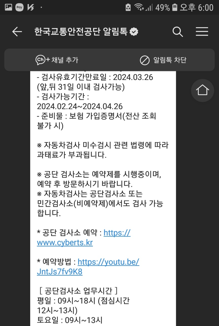 이런 느낌의 자동차검사 안내라고 보면 된다.