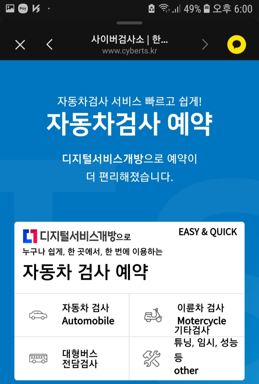 날짜와 가까운 자동차검사소 예약하는 캡처화면을 담지 못하였는데, 검사예약 최초 버튼만 잘 눌렀다면 어려움 없이 순서대로 입력만 해주면 된다.
