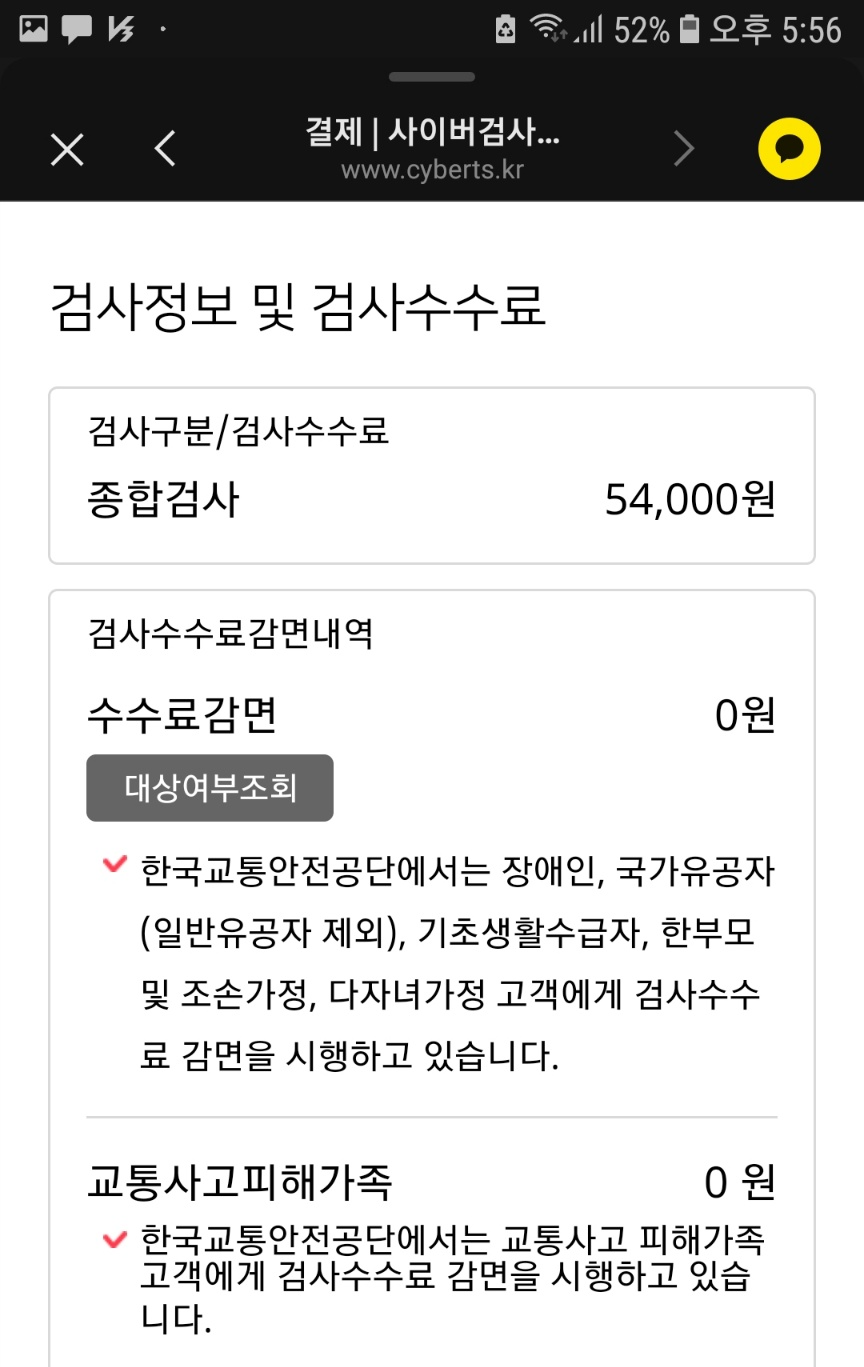 자동차검사 수수료 결제까지 마치면 모든 예약이 완료된다.