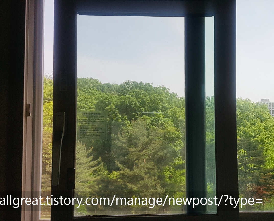 10년 이내의 비교적 관리상태 괜찮은 아파트에 살고 있음도, 샤시 방충망이 완공시기에 비해서 많이 오염되고 부식되었다. 공원과 풍부한 녹지공간을 가까이 둔 집이라서 모기를 비롯해서 이름