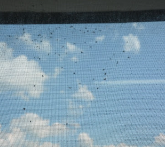 방충망 틈에 벌레 기타 오염물이 끼어도 코팅된 방충망에 스며들거나 오염되지 않고 떠있다고 보면 된다.