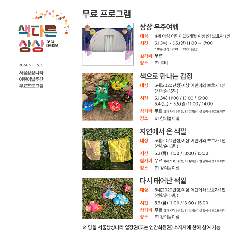 어린이날에 서울 어린이대공원 상상마당을 찾는 어린이들이 족히 수백 명 이상을 될 것인데, 프로그램당 선착순 15명은 아쉬움이 크다.