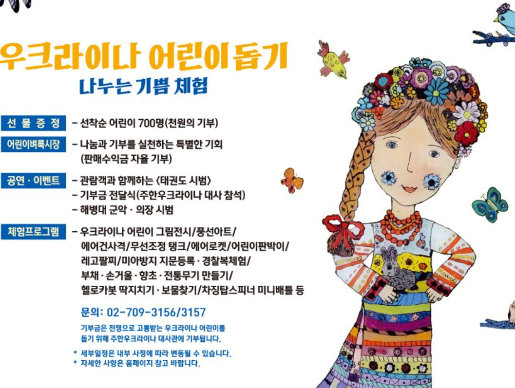 우크라이나 어린이돕기 나누는 기쁨체험 행사로, 어린이날에 기념하여 전쟁의 아픔을 겪고 있는 우크라이나 어린이돕기 체험이다.