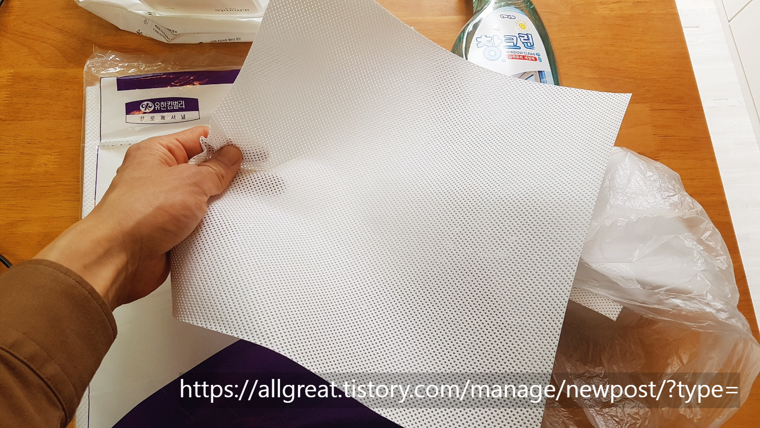 참고로, 비가 내린 후 유리창에 물기가 남아 있을 때에는 '킴테크 와이퍼'만으로 닦아도 유리창문이 쉽게 잘 닦인다.