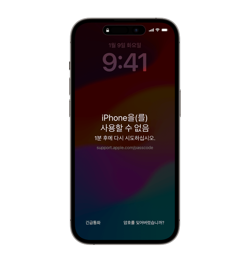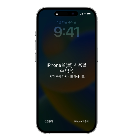 아이폰은 잠금 비번을 틀려서 재시도를 하면 할수록, 다음 잠금해제를 할 수 있기까지의 대기 시간이 점점 길어진다.