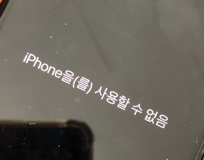 '아이폰을 사용할 수 없음' 상태는 비번도 활성화가 안되서 잠금해제 시도조차 할 수 없는 상황이다.