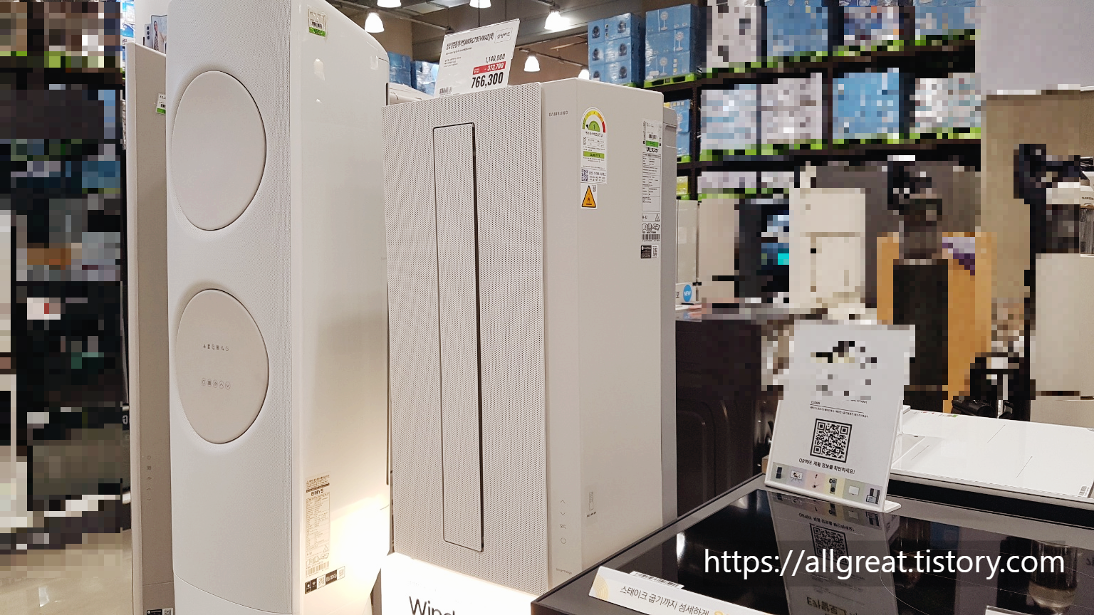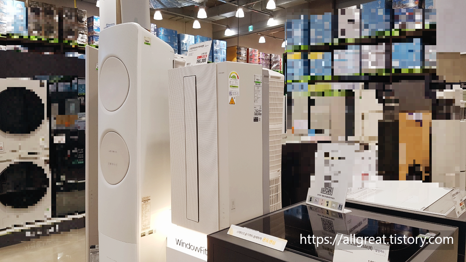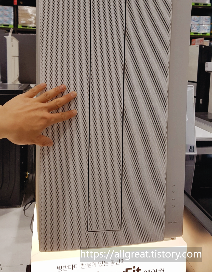 무풍 창문형에어컨 바로 왼쪽으로는 '삼성무풍 스탠드형 에어컨'이 있으니 크기를 비교해 보시길 바란다.