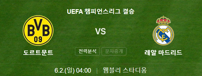6/2(일) 새벽 4시 도르트문트 vs 레알마드리드, 챔스 결승 결과 맞히면 다음 시즌까지 볼 수 있는