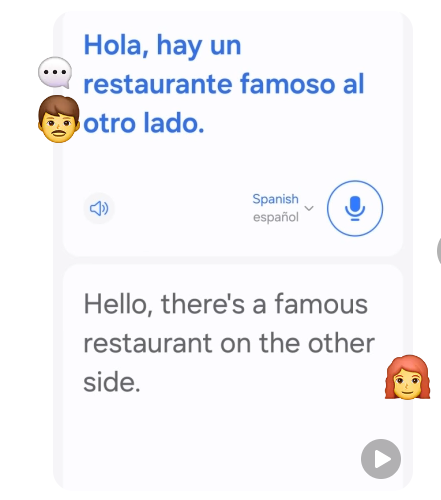 기본적으로 Z플립5에 설치되어 있는 AI 통역프로그램을 사용해서 전자사전처럼 언제든 통역 서비스를 받거나, 외국 현지에서는 맛집을 추천받는 등 다양한 통역서비스가 제공된다.