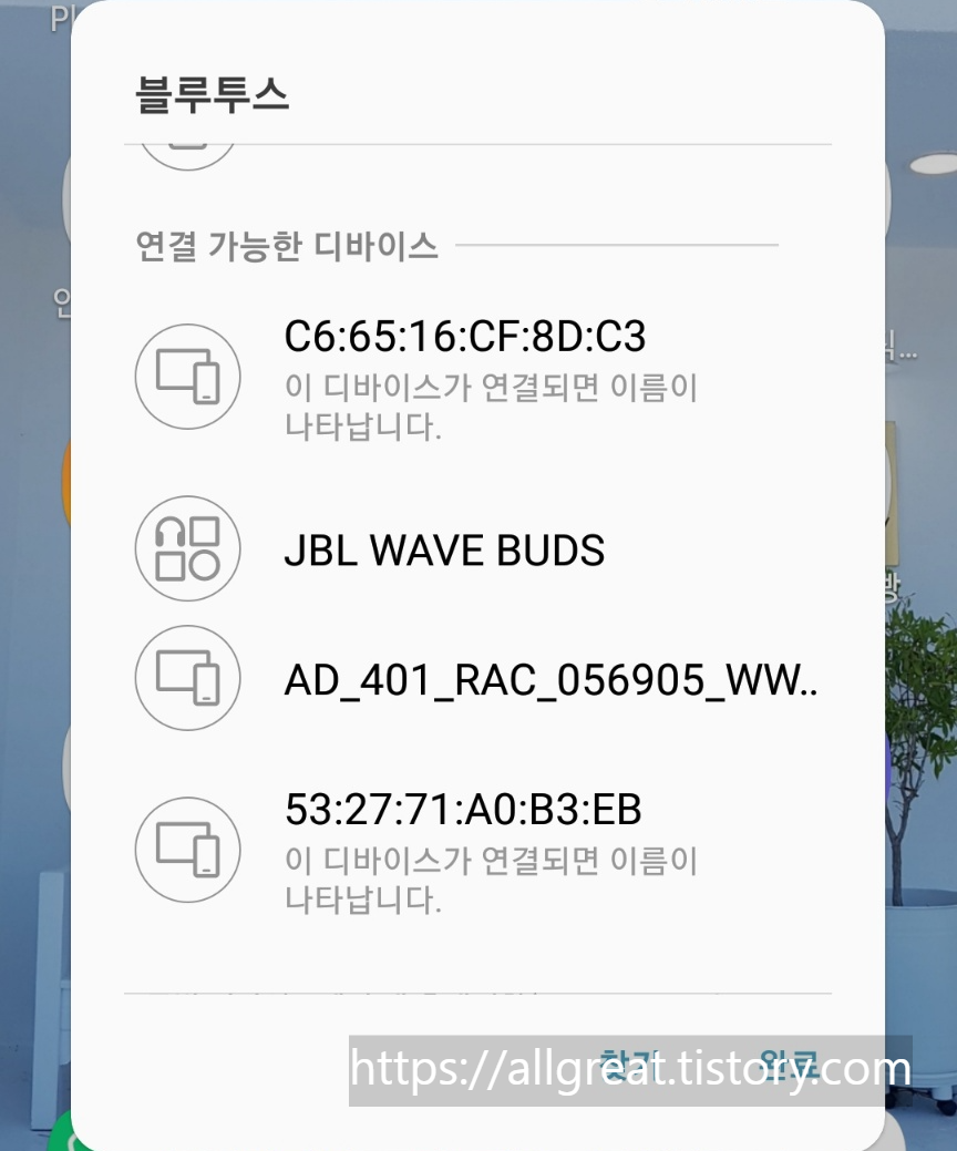검색된 '연결 가능 디바이스'에서 'JBL WAVE BUDS'를 누르자.