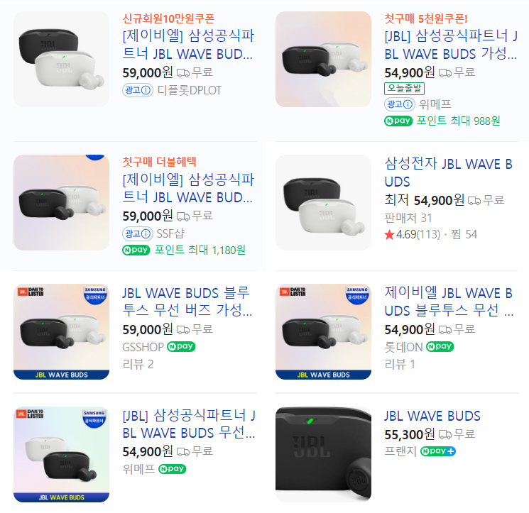 JBL wave buds 이어폰 가격