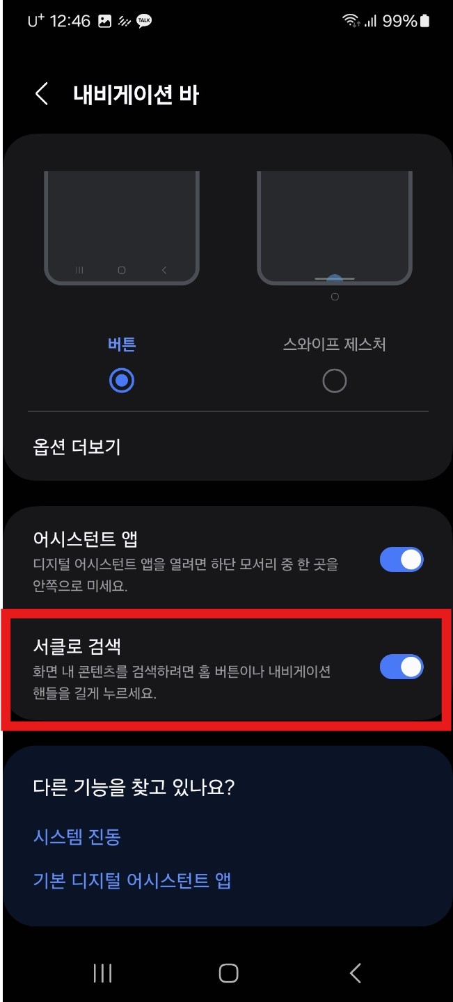 '네이게이션바' 항목에 들어갔다면, '서클로 검색'이 보일 것이다.