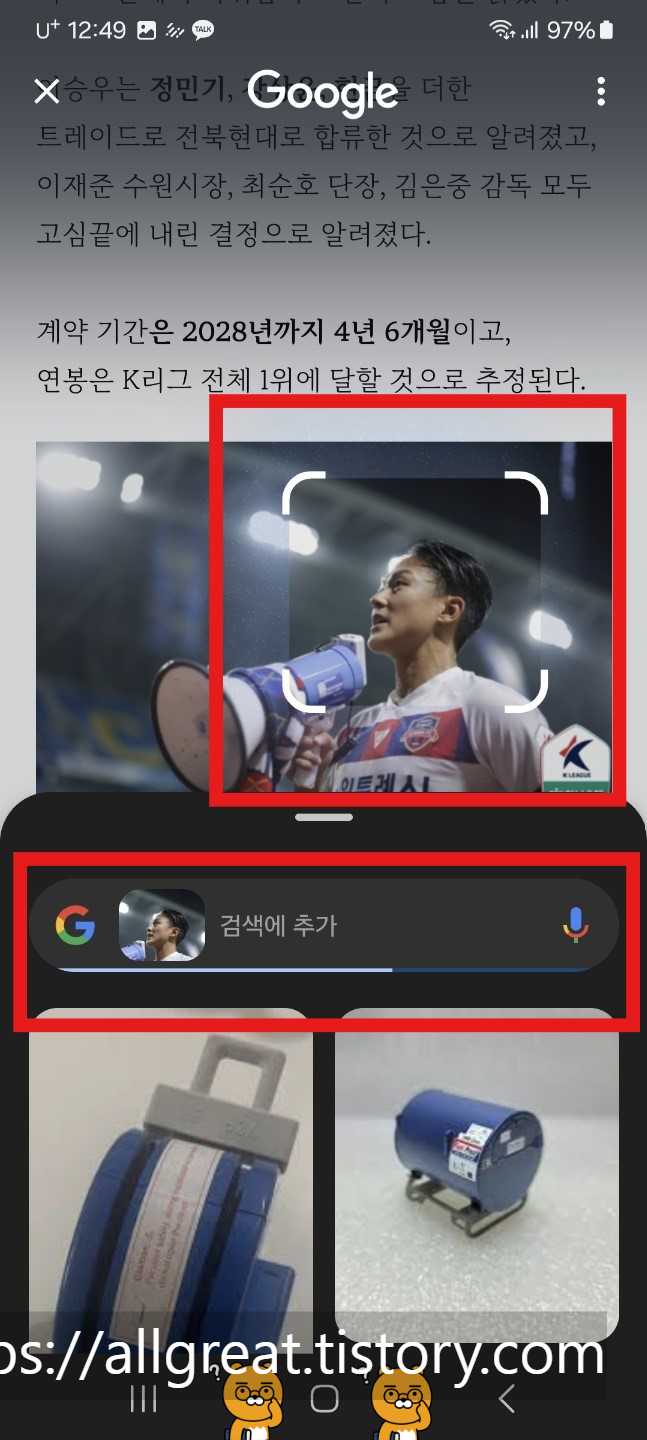 이번에는 K리그 프로축구 선수 이승우의 얼굴을 서치투서클 이미지검색을 해보았다.