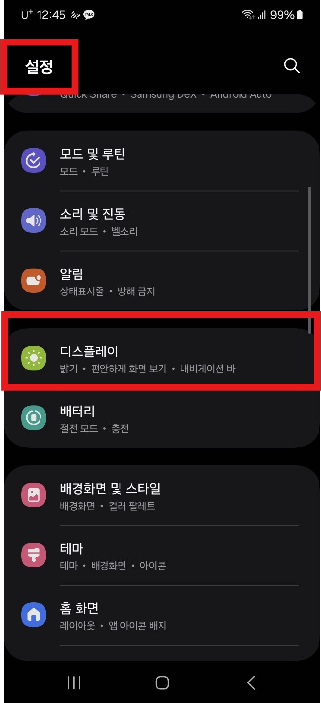 '설정'항목에 들어가서 '디스플레이'에 들어가자!