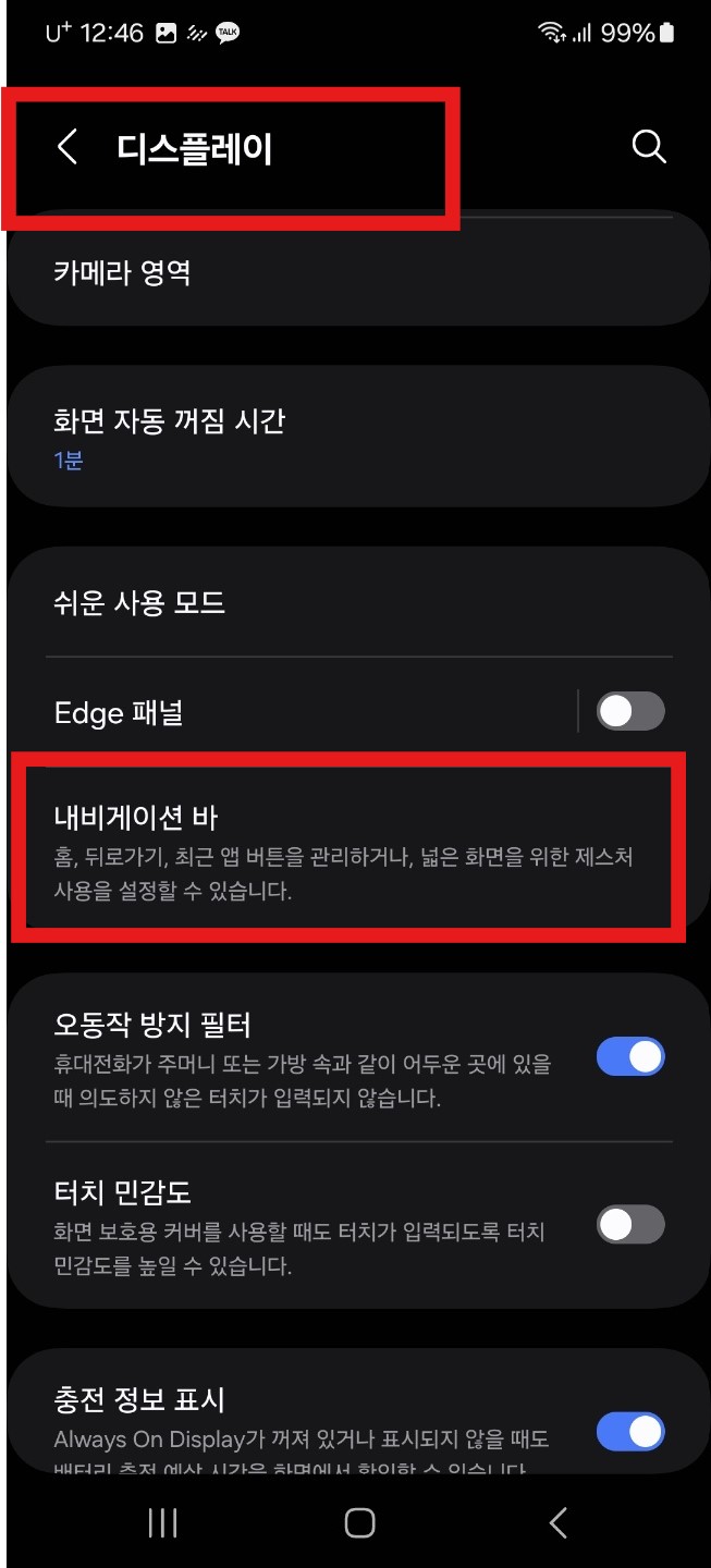 '디스플레이' 카테고리에 들어갔다면, '내비게이션 바' 항목을 클릭하자!