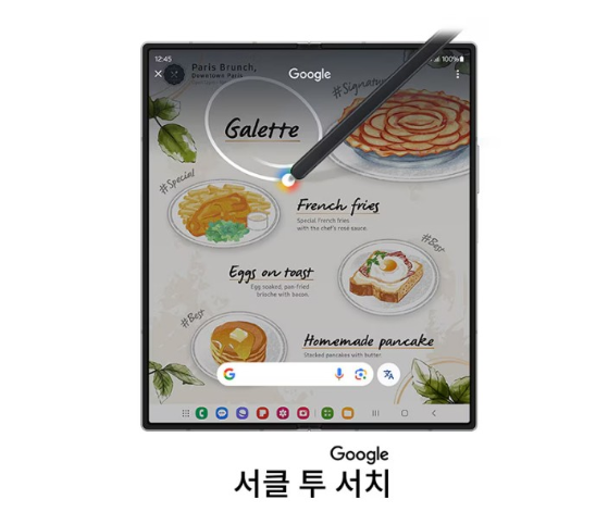 삼성 갤럭시 제품의 특별한 사진검색 기능인 '서클투서치'가 갤럭시폴드6에도 탑재되어 있다.