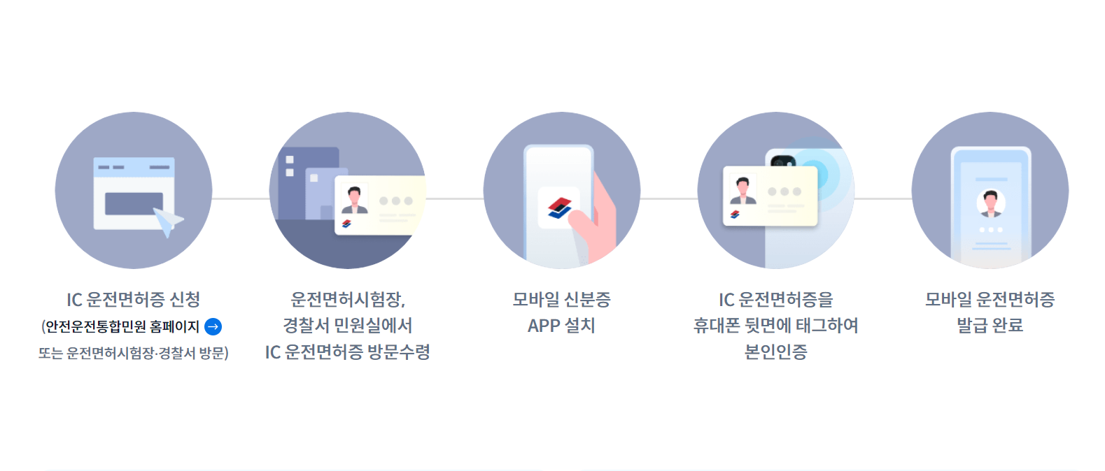 1. 안전운전통합민원 홈페이지 또는 운전면허시험장, 경찰서에 방문하여 IC운전면허증 신청