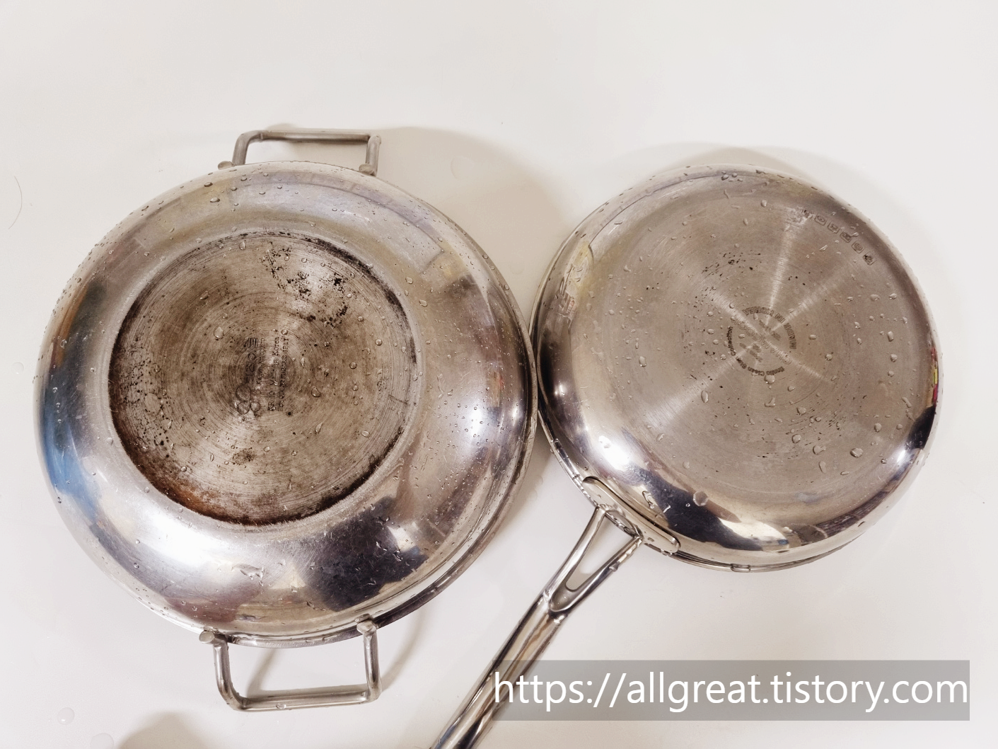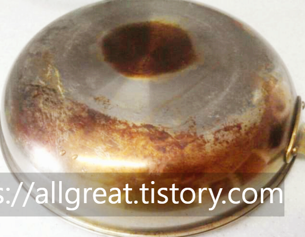 자! 여기 스텐레스 후라이팬 냄비 바닥 그을림 탄자국 매우 간편하고 쉽게 세척 청소법이 있다.