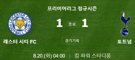 전반전에서 많은 기회를 놓쳤던 토트넘이 후반전에는 레스터시티에 밀리는 모습을 보였고, 한 편으로는 무승부가 다행이다 싶을 정도였다.