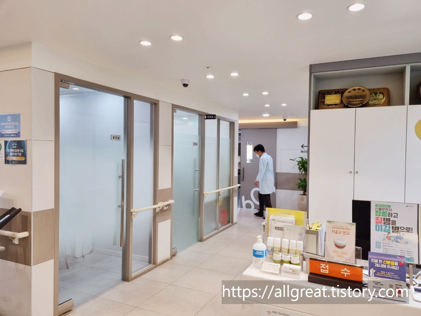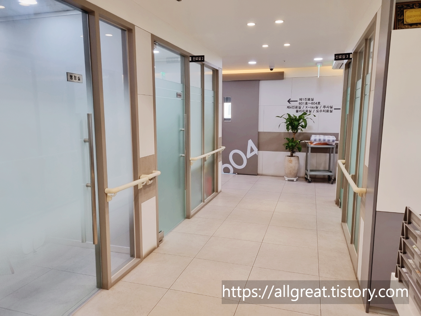 단, 결정적인 단점이기는 한데, 병실마다 화장실이 없다는 점이 아쉬웠다. 그래서 병실 앞 복도 끝에 위치한 화장실을 이용해야 하는데, 다행히 무릎관절수술로 걷기가 힘든 환자를 배려하여 화장실에서 가장 가까운 쪽의 병실로 배정받을 수 있었다.