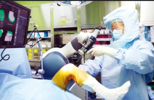 무릎 앞십자인대를 비롯하여 많은 인대와 근육 및 신경들을 절개하여 인공관절로 대체하는 전치환술(무릎수술)이다.