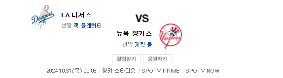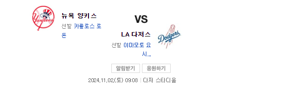 2024 MLB 미국프로야구 메이저리그 월드시리즈가 4차전까지 치러졌다.