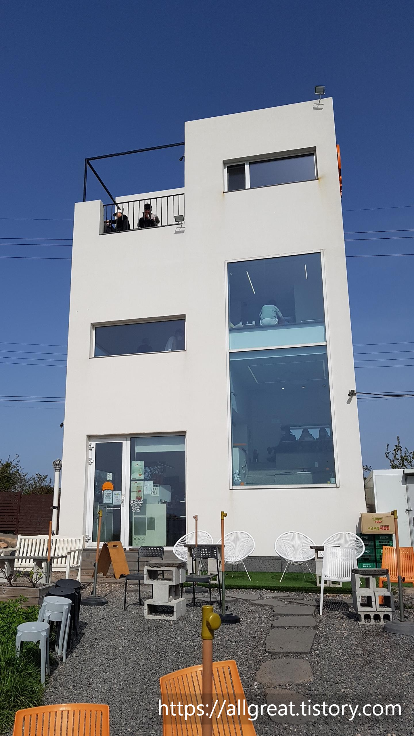 화이트 색상의 카페 건물이