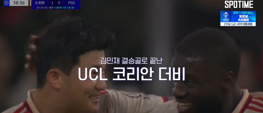 무엇보다 세계적인 중앙수비수 뮌헨의 김민재가 헤더골로 결승골을 넣었던 명승부 뮌헨 파리생제르망 경기였다.
