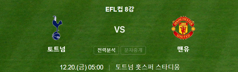 카라바오컵(EFL컵) 8강에서 토트넘과 맨유가 격돌한다.