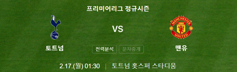 다가오는 2025년 2월 17일 프리미어리그 정규리그 토트넘 맨유 경기는 스포티비 프라임, 스포티비나우를 통해서 실시간 생중계로 시청할 수 있다.